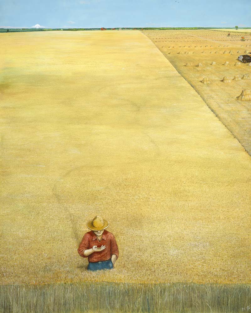 If you compare the last of Kurelek’s paintings of The Ukrainian Pioneer series with the previous landscapes scenes, how is this one different?